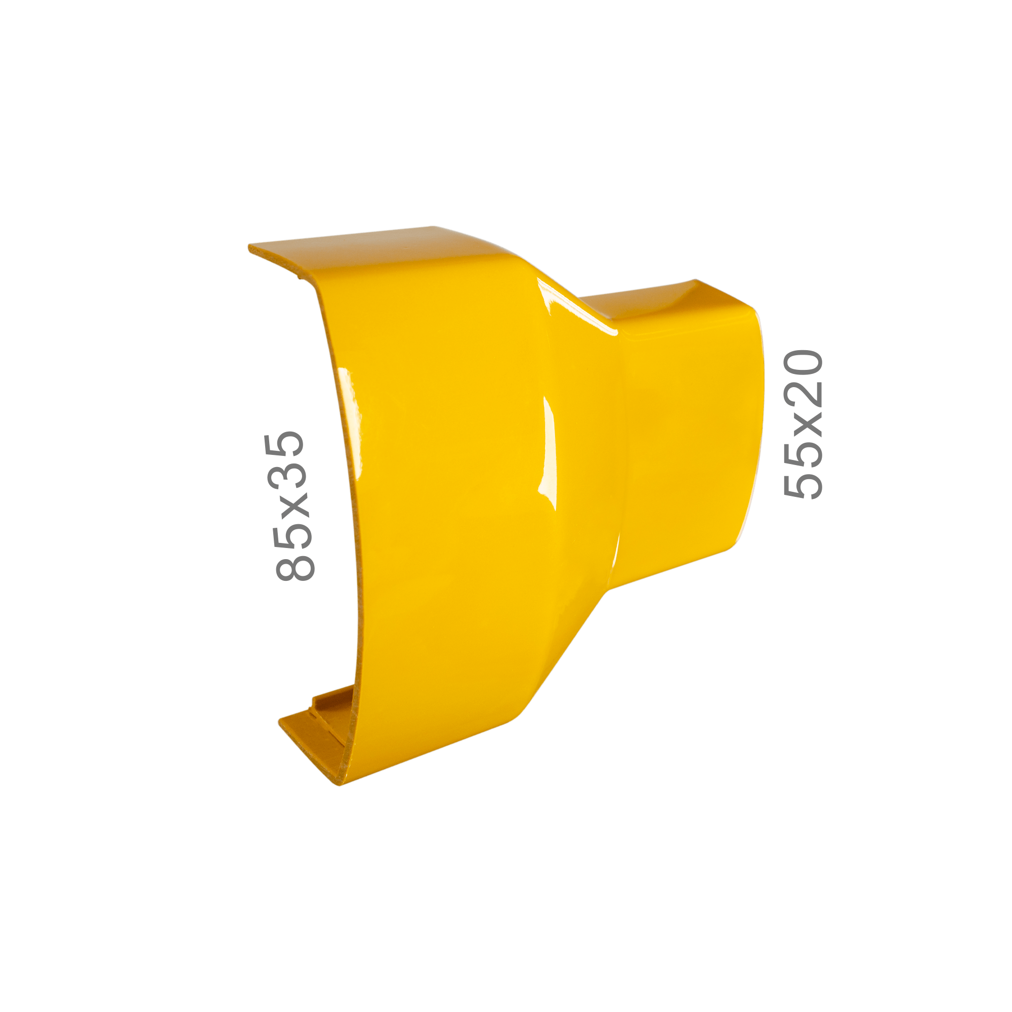 Redução Concêntrica Laranja 85×35 mm ou 8,5cm x 3,5cm, com redução ao centro para 55×20 mm ou 5,5cm x 2,0cm. Utilizada como acabamento na junção entre duas canaletas fixadas na mesma parede, sendo uma delas 85x35mm e a outra 55x20mm. Fabricada em material plástico isolante, em peça única, com garras de fixação reforçada. Utiliza a própria base da canaleta para fixação.